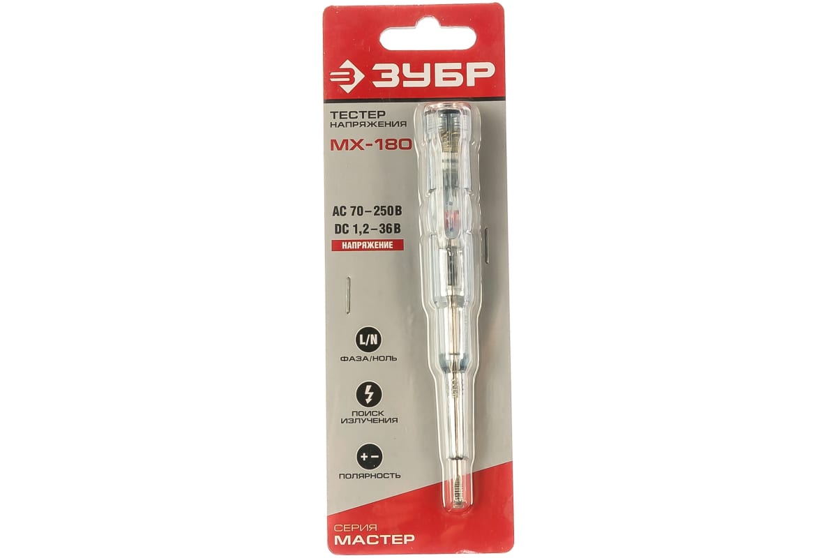 Многофункциональный тестер напряжения 70-250В Зубр МАСТЕР 45235 - прочный и надежный в эксплуатации электромонтажный прибор для определения напряжения, полярности и микроволнового излучения. Подходит для домашнего и профессионального использования. Отличается высоким качеством исполнения, изготовлен в соответствии с высокими требованиями стандартов качества.