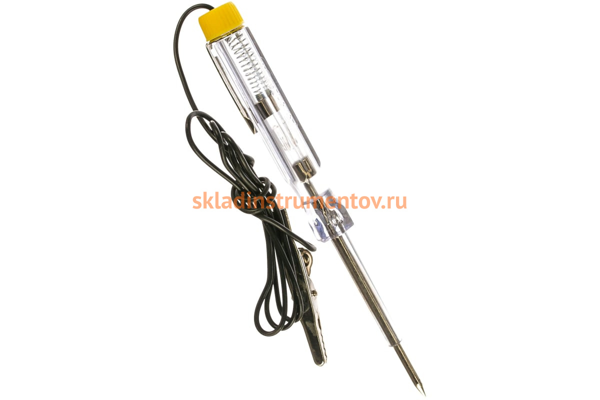 Пробник для автопроводки 6-24В, 120мм STAYER STANDARD 2573-24V_z01 - специализированное приспособление для контроля напряжения бортовой сети автомобиля, и для использования в качестве классического пробника (благодаря съемному зажиму). Изделие позволяет безошибочно определить наличие напряжения в проводниках. При его обнаружении загорается световой индикатор. Корпус пробника изготовлен из пластика, наконечник имеет удобную коническую форму.