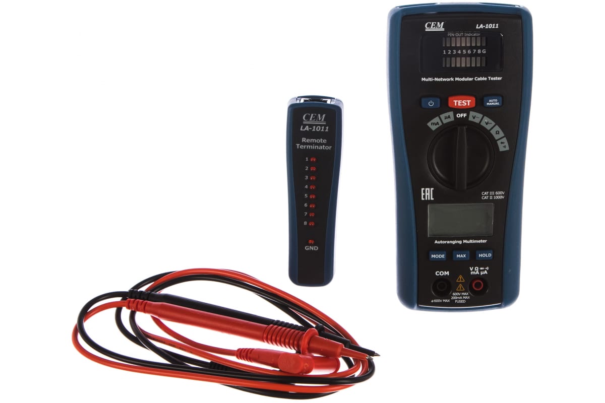 Кабель-тестер СЕМ LA-1011 481189 применяется для диагностики и поиска неисправностей на телефонных и компьютерных линиях. Конструкция модели делает возможной одновременную проверку до восьми кабельных жил (характер поломки, а так же номер линии определяется автоматически). Прибор позволяет быстро обнаруживать обрыв кабеля, короткое замыкание, наложение жил витых пар.