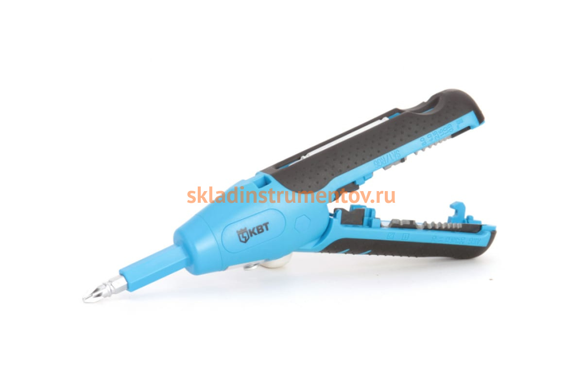 Инструмент для снятия изоляции КВТ WS-05 55953 - многофункциональное приспособление для проведения электромонтажных работ. С его помощью можно резать провода и снимать оболочку с кабелей диаметром до 13 мм. Прецизионная заточка лезвий обеспечивает качественную и максимально эффективную работу. Эргономичная двухкомпонентная раскрывающаяся рукоятка со вставками из термопласт-резины и замком-фиксатором делает работу более комфортной. Конструкцией предусмотрено две двухсторонние намагниченные отвертки из хром-молибденовой стали, для демонтажа креплений.