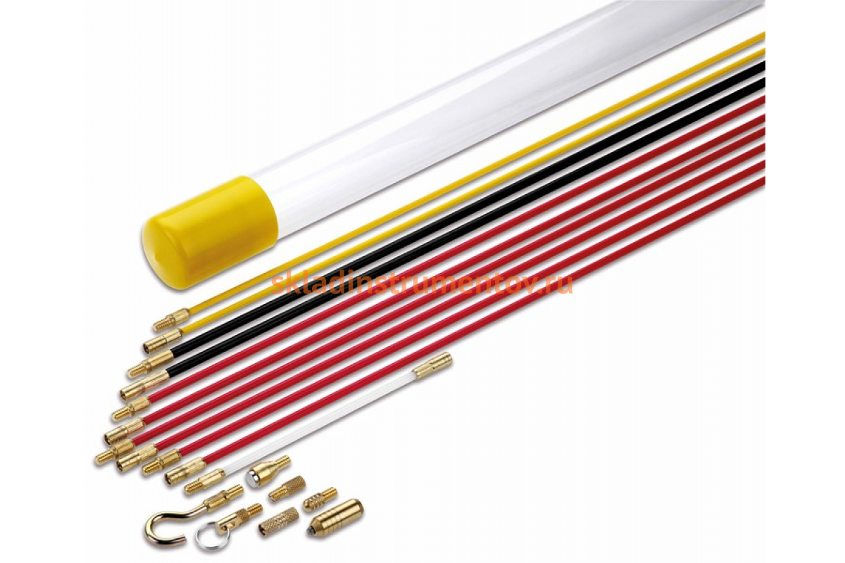 Набор проталкивающих стержней CIMCO DELUXE 14 7302 включает в себя латунные соединения, которые не блокируют повороты и изгибы. Имеется ведущий стержень, окрашенный в белый цвет. Во избежание поломок стержней они окрашены в различные цвета согласно радиусу поворота. В комплект также входит лампа для освещения труднодоступных места. Общая длина всех стержней составляет 10 метров.