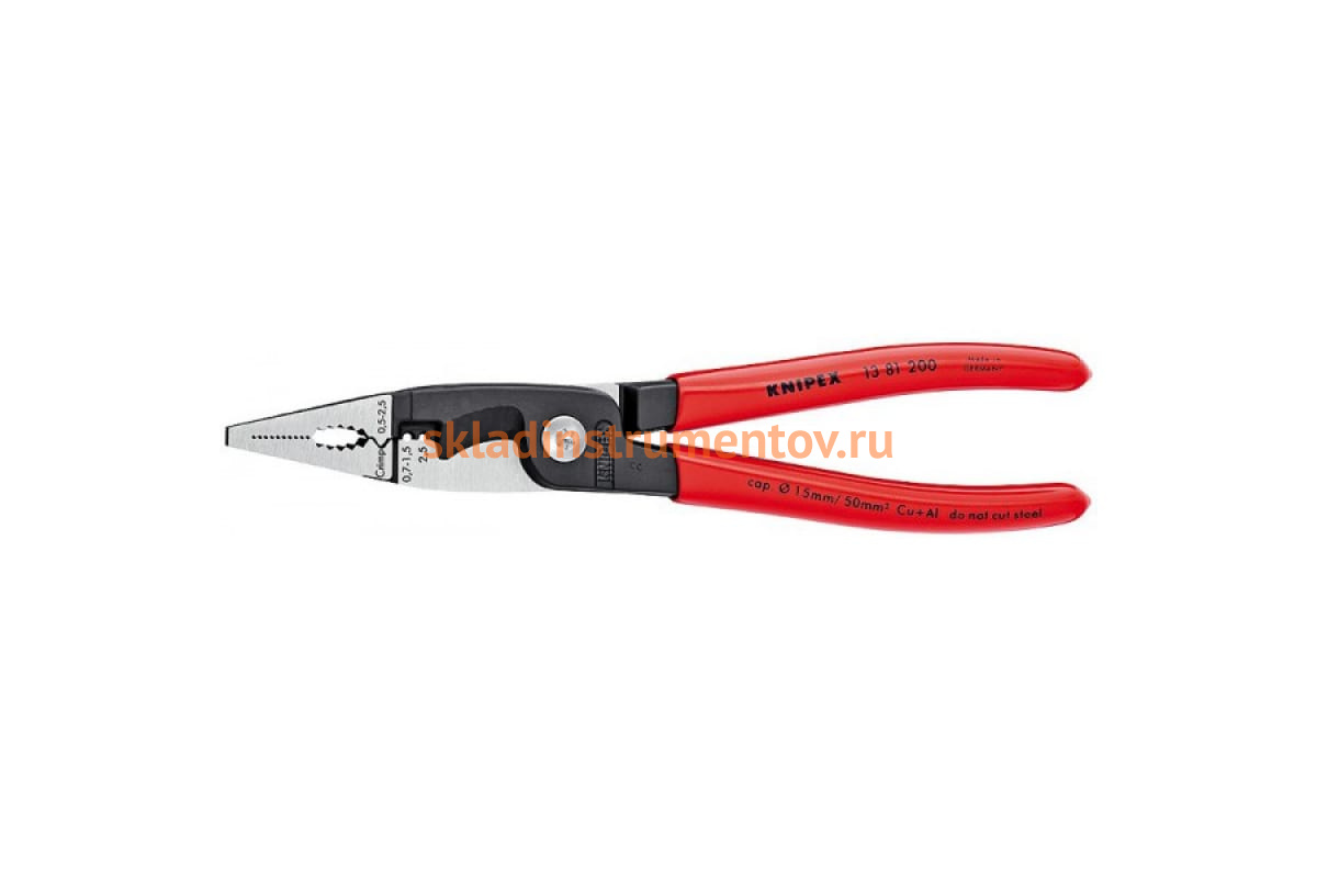 Инструмент для снятия изоляции KNIPEX KN-1381200 - это профессиональные клещи электромонтажника, которые благодаря своей многофункциональности подходят для резки проводов и удаления оболочки с них, а также могут применяться для обхвата и загиба проволоки, удаления металлических заусенцев и опрессовки концевых гильз. Инструмент изготовлен из высокопрочной инструментальной стали, на которой проведена антикоррозионная обработка (чернение). На инструменте предусмотрена возможность удаления изоляции с кабелей различного сечения за счет специальных прецизионных отверстий. Двухкомпонентные чехлы рукояток исключают скольжение и защищают руки оператора во время работы.