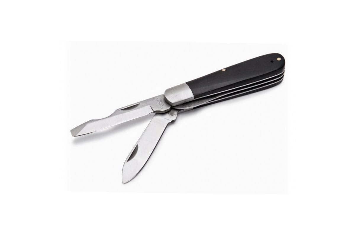Монтерский нож КВТ НМ-08 68429 подойдет не только для снятия изоляции и зачистки жил от окисной пленки, а также поможет зафиксировать провод на клеммнике благодаря одному из лезвий с отверткой на конце. Нож оснащен двумя лезвиями, выполненными из нержавеющей стали. Эргономичная рукоятка изготовлена из термомодифицированной древесины.