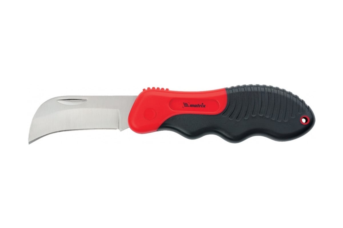 Складной нож электрика, изогнутое лезвие, эргономичная двухкомпонентная рукоятка MATRIX 78986 удобен в обхвате благодаря специальной форме и противоскользящему двухкомпонентному материалу рукоятки. Лезвие имеет изогнутую форму. Материал рабочей части - коррозионностойкая сталь. Данный инструмент широко используется для проведения электромонтажных работ: зачистки и резки проводов. Складная конструкция обеспечивает безопасность при хранении и транспортировке ножа.
