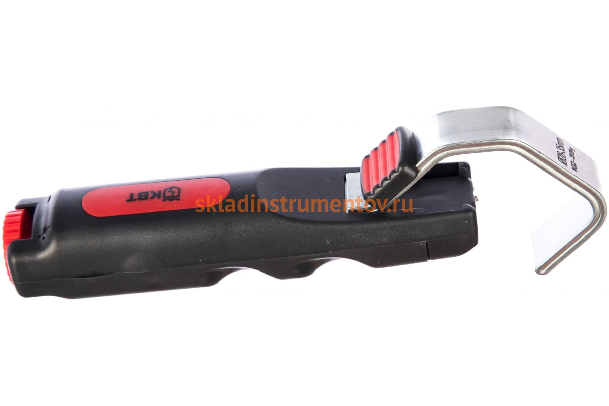 Инструмент для снятия изоляции КВТ КС-35у 70439 предназначен для обработки круглых кабелей диаметром от 28 до 35 мм. Для продольного и радиального реза оболочки провода в конструкции предусмотрен автоматически поворачивающийся нож. Работать таким инструментом очень удобно за счет его компактности и эргономичности.