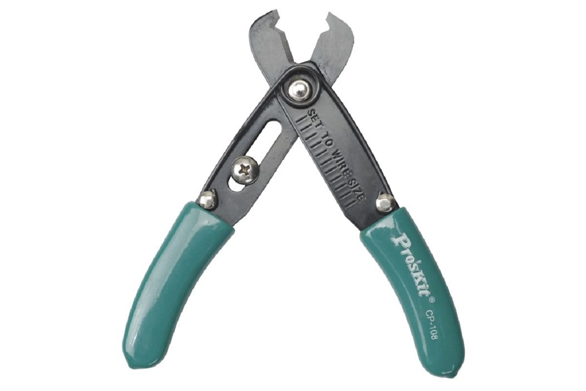 Клещи для резки/зачистки проводов ProsKit CP-108 регулировка винтом 127мм С00035489 имеет регулируемый винтовой упор для разных размеров проволоки и амортизирующие захваты. Осуществляет нарезку и зачистку как одножильного, так и многожильного провода.