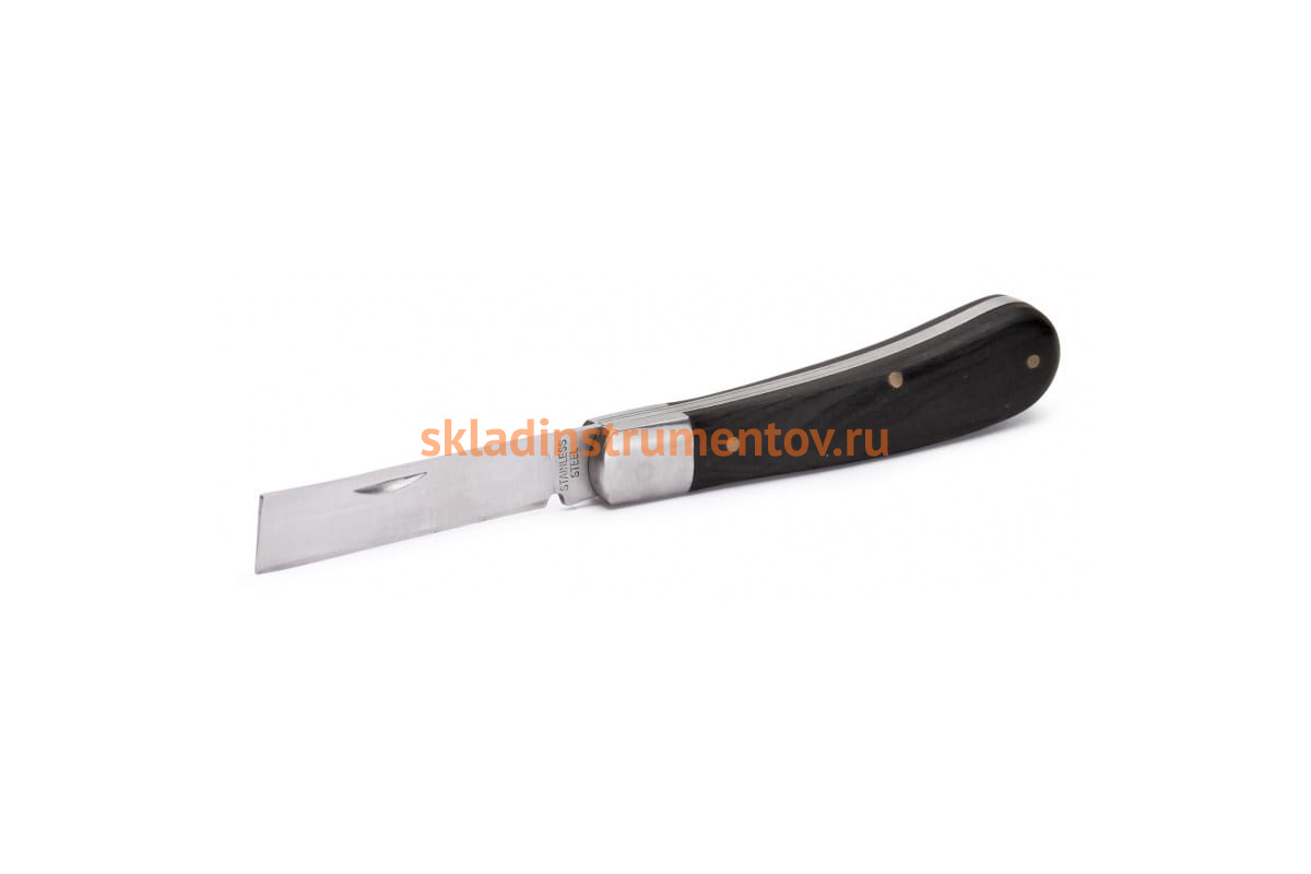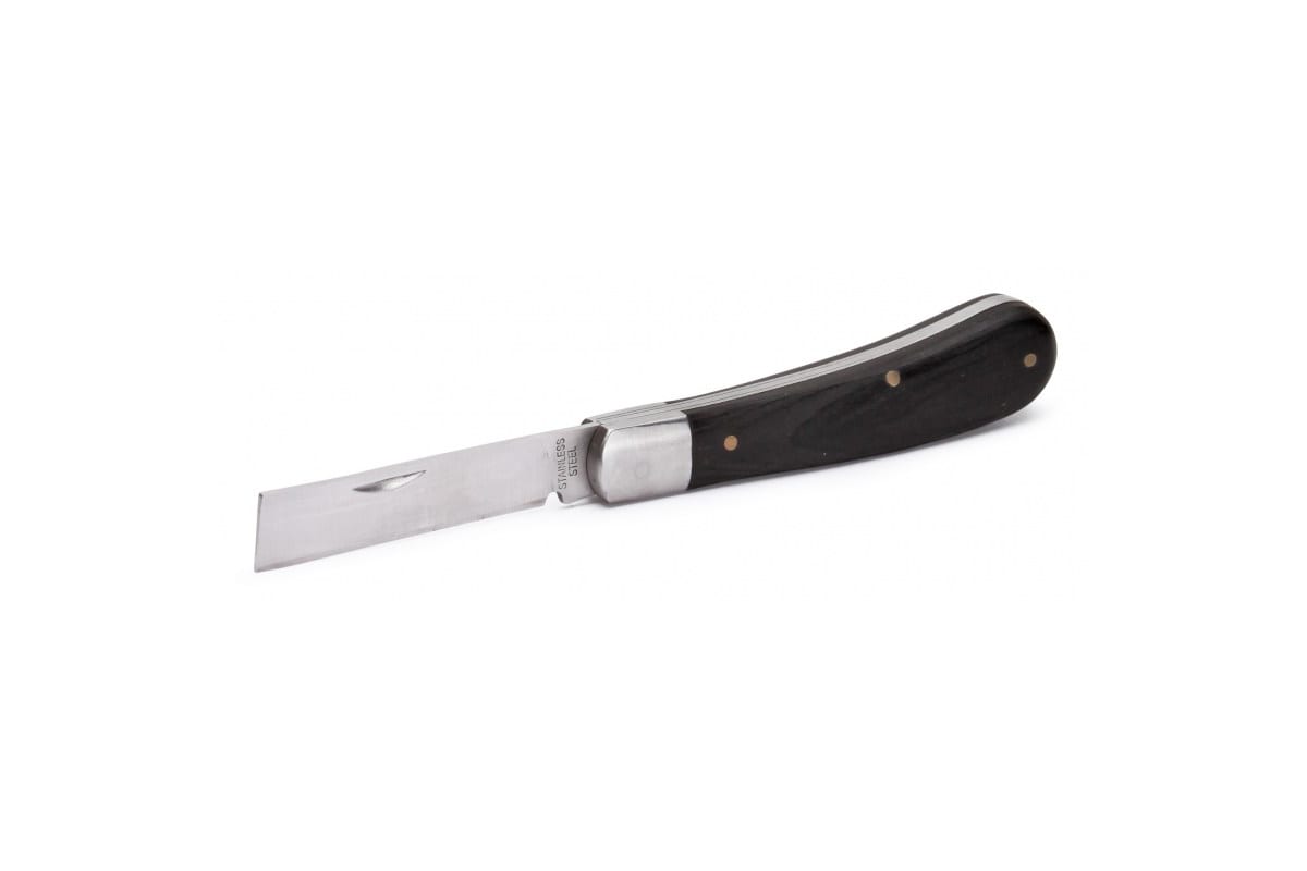 Монтерский нож КВТ НМ-04 67550 - это простое и компактное приспособление, которое безопасно для хранения, так как инструмент складной. Нож предназначен для снятия изоляции, оболочки кабеля, а также зачистки жил от окисной пленки. Лезвие изготовлено из нержавеющей стали. Деревянная рукоятка.