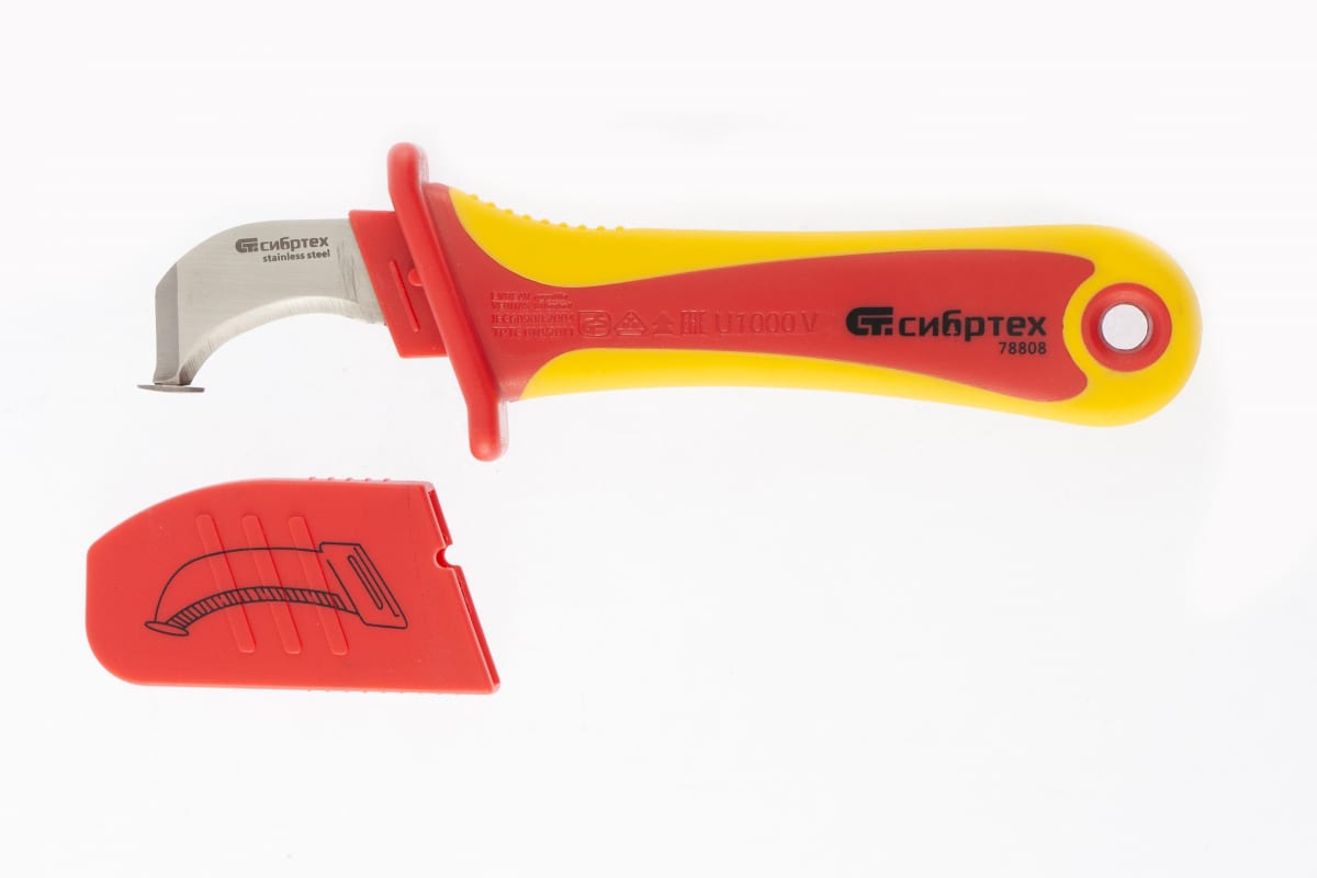 Диэлектрический нож для снятия оплетки электрокабелей СИБРТЕХ 78808 используется при электромонтажных работах. Предназначен для зачистки изоляции кабеля.