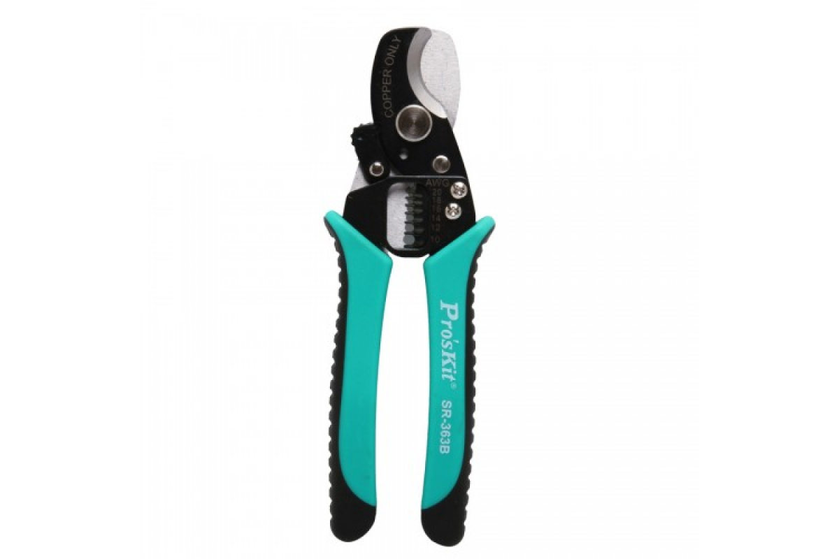 Кабелерез ProsKit SR-363B 00271086 оснащается двухкомпонентными рукоятками. Рельефная поверхность исключает скольжение.