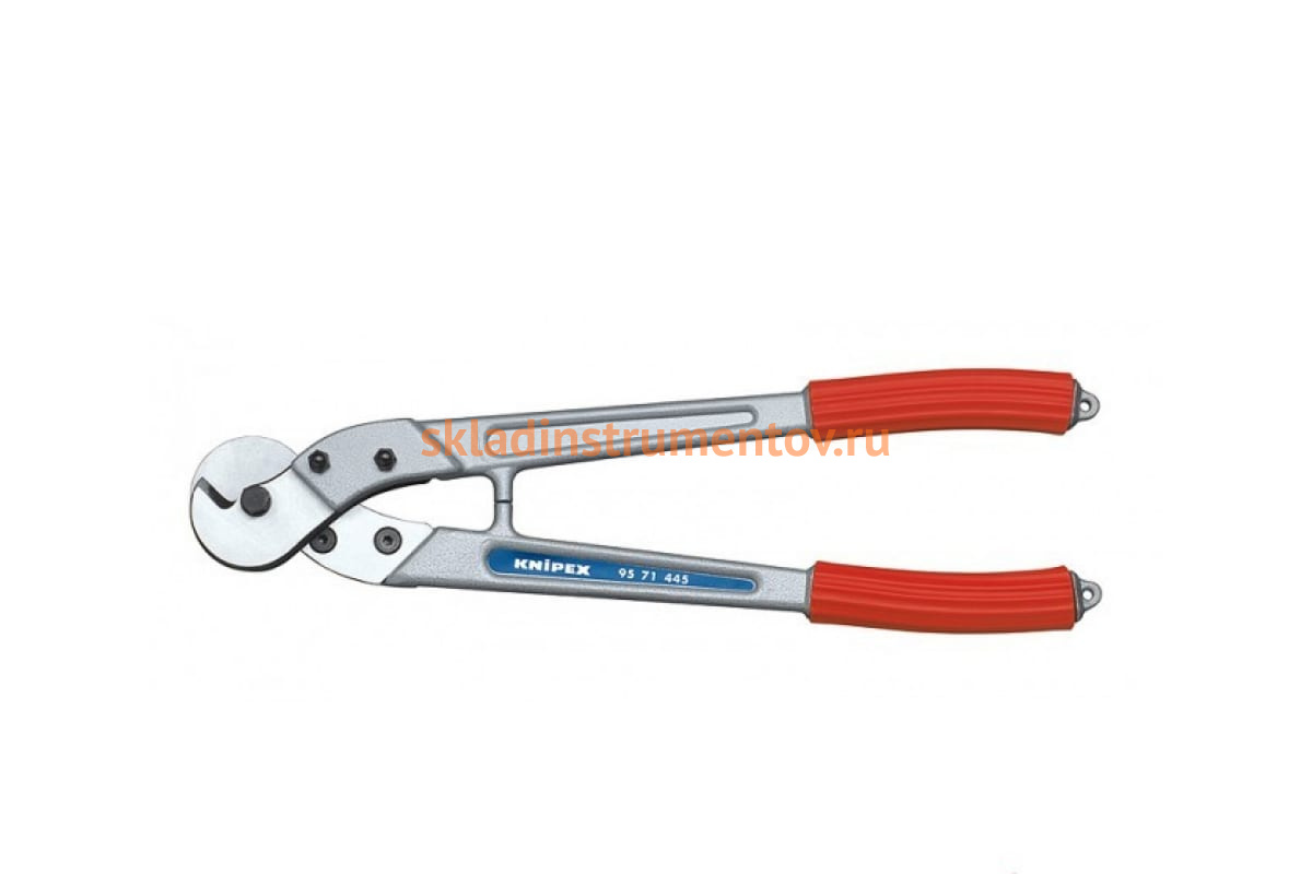 Кабелерез Knipex KN-9571445 представляет собой профессиональный инструмент длиной 445 мм, предназначенный для перекусывания проволочных тросов, круглых железных профилей, для медных и алюминиевых кабелей. Он выполнен из высокопрочного алюминия. а значит защищён от коррозии и прослужит долго.