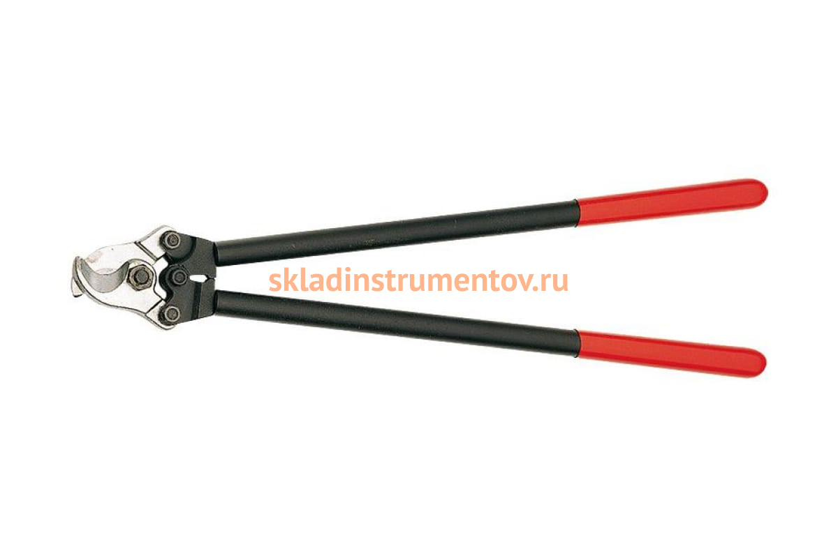 Кабелерез KNIPEX KN-9521600 обладает высокой режущей способностью благодаря двойному рычагу. Применяется для резки медных, алюминиевых, одно- и многожильных кабелей диаметром 27 мм и сечением до 150 кв. мм. В конструкции предусмотрен винтовой шарнир для более плавного хода и точного управления ножами. Рукоятки из стальной трубы с пластмассовыми чехлами, предотвращающими скольжение рук во время работы.