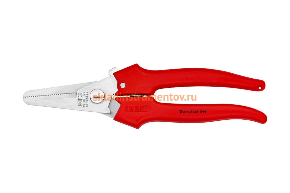 Комбинированные ножницы KNIPEX KN-9505190MFZ оснащаются зазубренными лезвиями, которые упрощают резку листового материала.