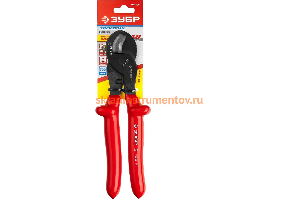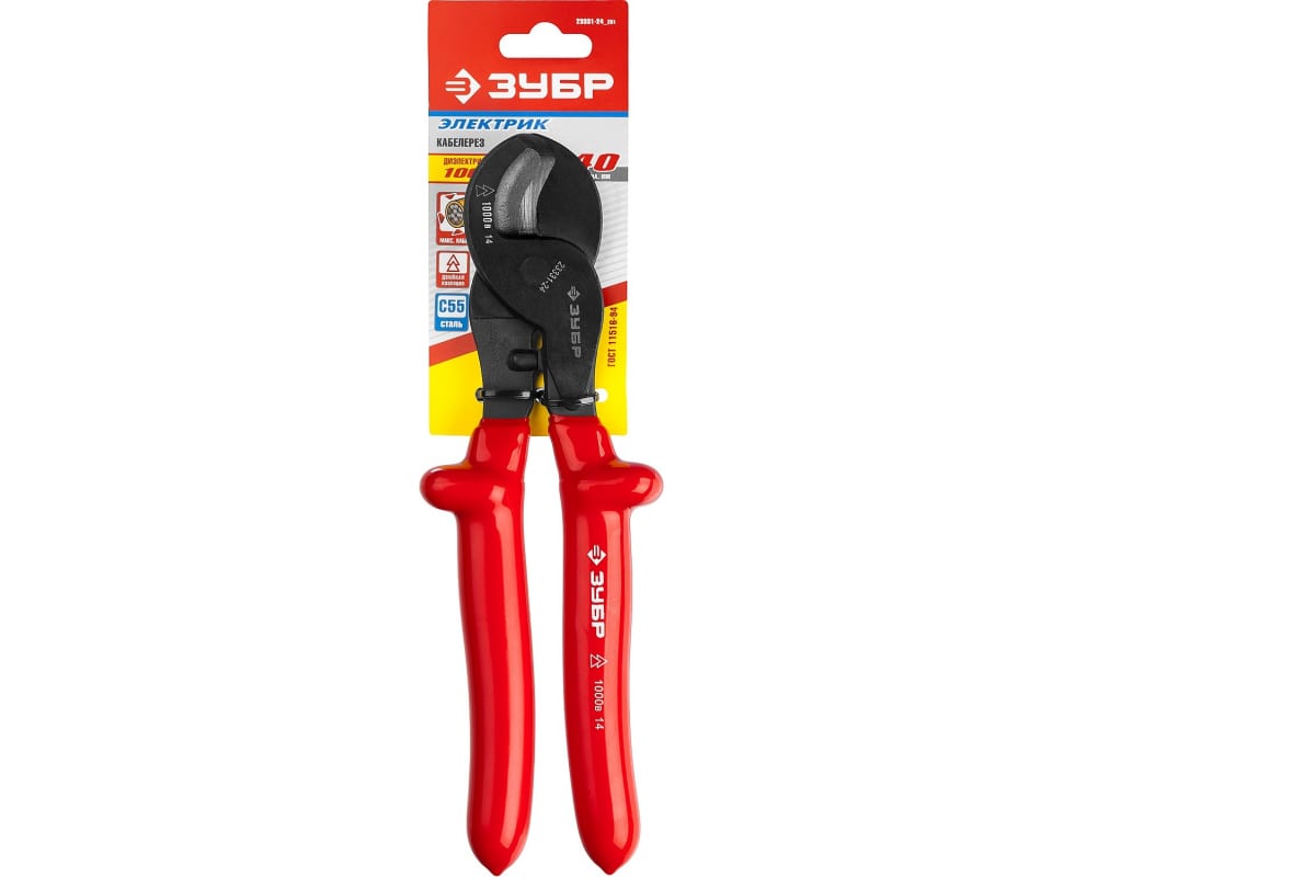 Высоковольтный кабелерез ЗУБР ЭЛЕКТРИК 23331-24_z01 используется для отрезания медного или алюминиевого кабеля, толщиной до 602 миллиметров и напряжением до 1000 Вольт. Данный инструмент полностью выполнен из металла и имеет мягкие прорезиненные накладки на ручках. Кабелерезы позволяют отрезать провода, тросы или закаленную проволоку, затрачивая минимум усилий.