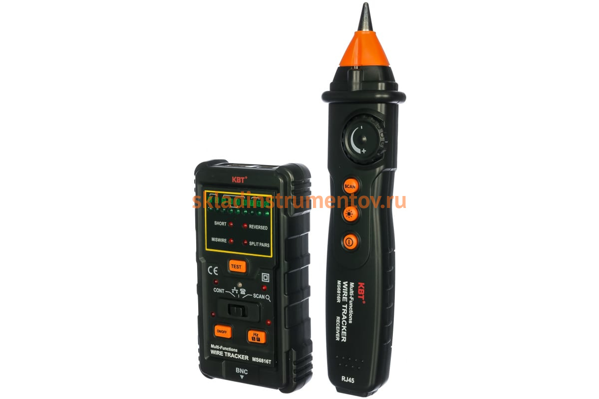 Кабельный тестер-трассоискатель КВТ MS6816 76124 предназначен для определения трассировки и тестирования сетевых линий с разъемом RJ-45, телефонных линий с разъемом RJ-11, коаксиальных кабелей с разъемом BNC. С его помощью можно определить целостность кабеля или линии, обнаружить короткое замыкание, обрыв цепи, нарушение полярности соединения и т.д. Благодаря прибору также возможна проверка статуса телефонной линии ("свободно", "занято" или "снятие трубки"). Приемник имеет встроенный фонарик, что облегчает работу в слабоосвещенных местах.