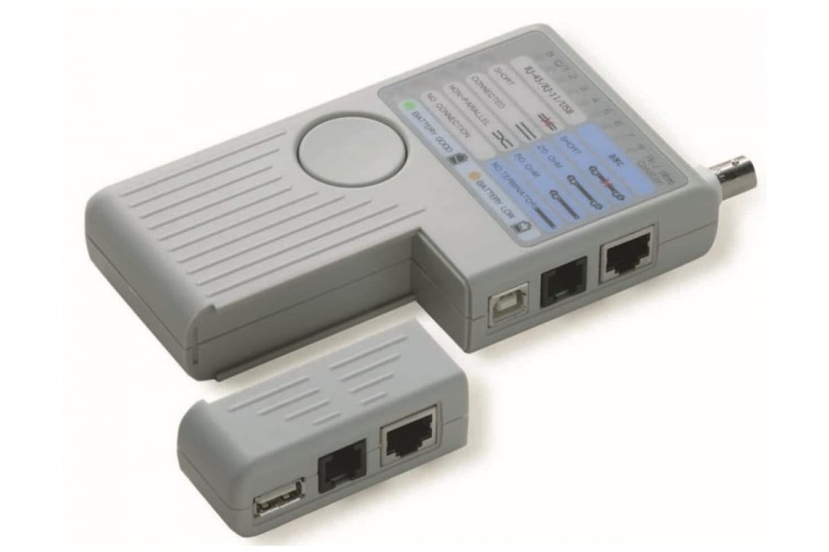 Детектор кабеля CIMCO 11 1440 разработан для быстрой проверки правильности подключения кабеля. Коаксиальные (BNC/TNC), UTP/STP с 6/8 модульными штекерами проверяются на правильность сборки и PIN-расположения. Допускается проверка кабеля длиной до 200 метров. Сигнал об ошибке выводится на LED-экран. Имеется также акустическая сигнализация. Устройство может указать на наличие короткого замыкания в одножильных или экранированных проводах. Размеры 145 х 86 х 26 мм позволяют свободно переносить устройство в кармане.