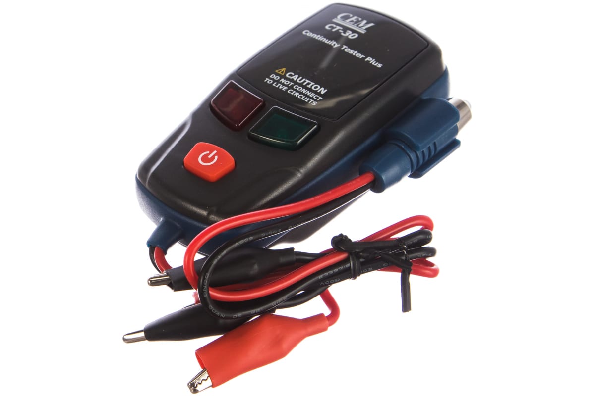 Тестер для проверки на разрыв СЕМ CT-30 480090 оснащается визуальной и звуковой системой индикации: в случае обнаружения разрыва электрической цепи мигает яркий красный светодиод и раздается прерывистый пульсирующий звук. Благодаря удаленному датчику есть возможность осуществлять "прозвонку" протяженного кабеля.