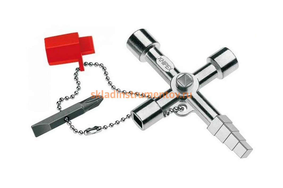 Профессиональный ключ для электрошкафов KNIPEX KN-001104 предназначен для работ по монтажу отопительных, климатических, сантехнических систем и др. Имеется адаптер для бит 1/4" на крепкой цепочке. Вместе с ключом и адаптером также поставляется двухсторонний бит: профиль прямой шлиц 1х7мм и профиль Phillips PH 2. Инструмент отлит из цинка под давлением, что позволяет выдерживать максимально возможные нагрузки.