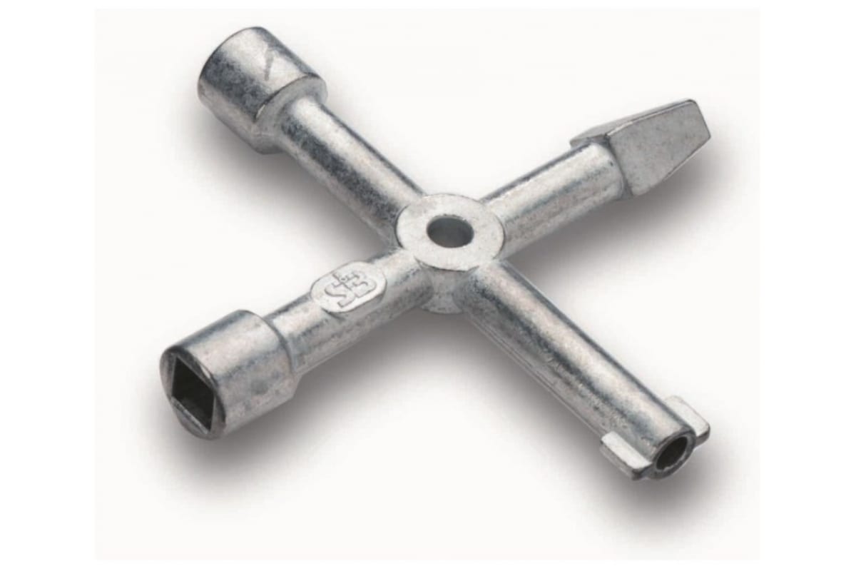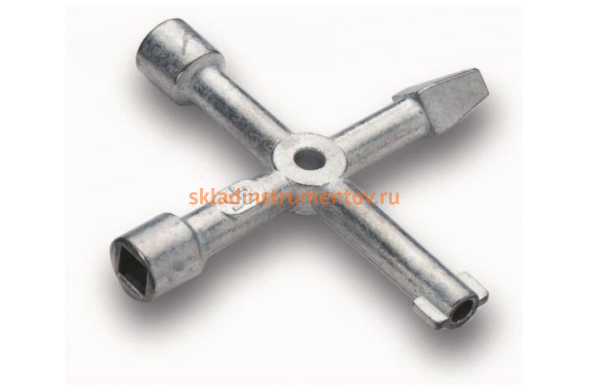 Шкафной ключ CIMCO 11 2883 - компактное приспособление, изготовленное методом литья из цинковых сплавов. Размер изделия 90 х 90 мм. Имеет 4 наконечника с профилем: треугольник, квадрат, конусный квадрат и круглый с ушками.