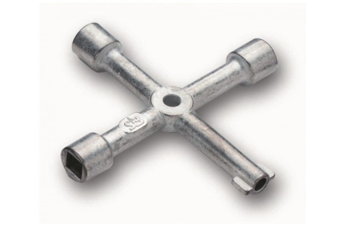 Шкафной ключ CIMCO 11 2882 - компактное приспособление, изготовленное методом литья из цинковых сплавов. Размер изделия 90 х 90 мм. Имеет 4 наконечника: треугольник, квадрат, полумесяц и круглый с ушками.
