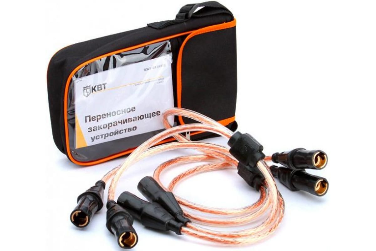 Устройство для закороток КВТ УКЗ-6 59328 включает в себя изолированный гибкий провод из меди, пять модулей для соединения с адаптерами для закороток и один модуль для соединения с проводом заземления. Силиконовая изоляция провода в 1,6 раза толще, чем на обычном проводе марки ПВ6-З.
