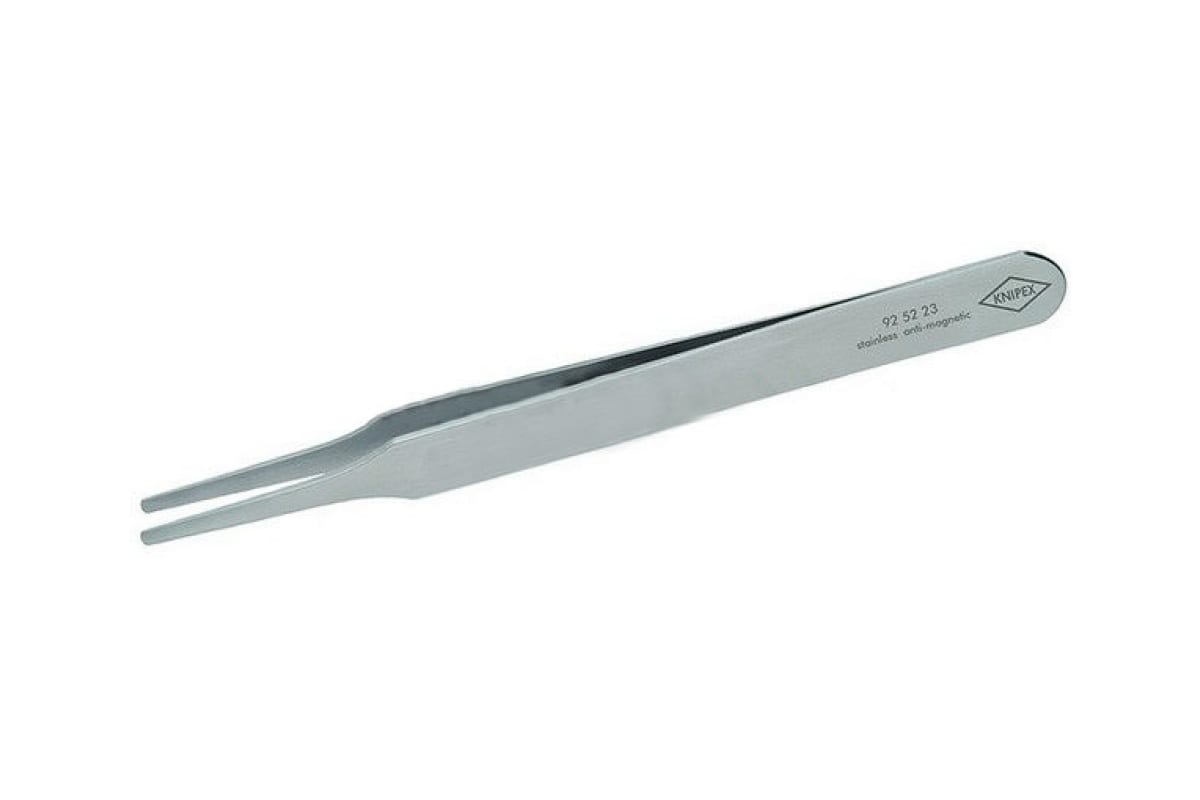 Прецизионный пинцет KNIPEX KN-925223 имеет гладкие фиксирующие плоскости зауженные к концам, что обеспечивает удобство захвата хрупких деталей и простоту проведения работ в труднодоступных местах. Инструмент изготовлен из хромоникелевой стали с антимагнитными и кислотоустойчивыми свойствами. Отличные технические характеристики позволяют прослужить ему долгое время.