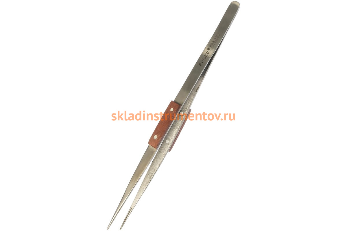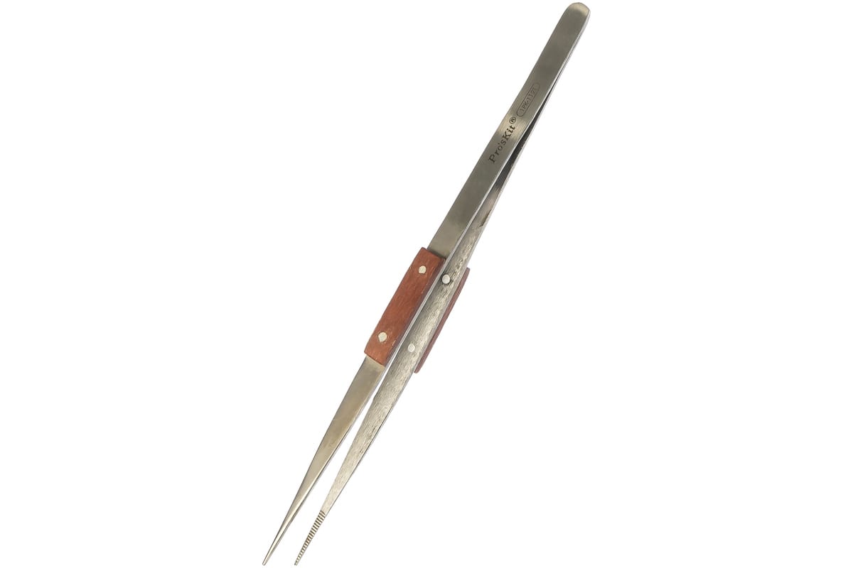 Пинцет ProsKit 1PK-119T 00072644 имеет увеличенную длину, что обеспечивает доступ даже к самым заглубленным платам, упрощает работу с электроникой и сложными ювелирными изделиями.