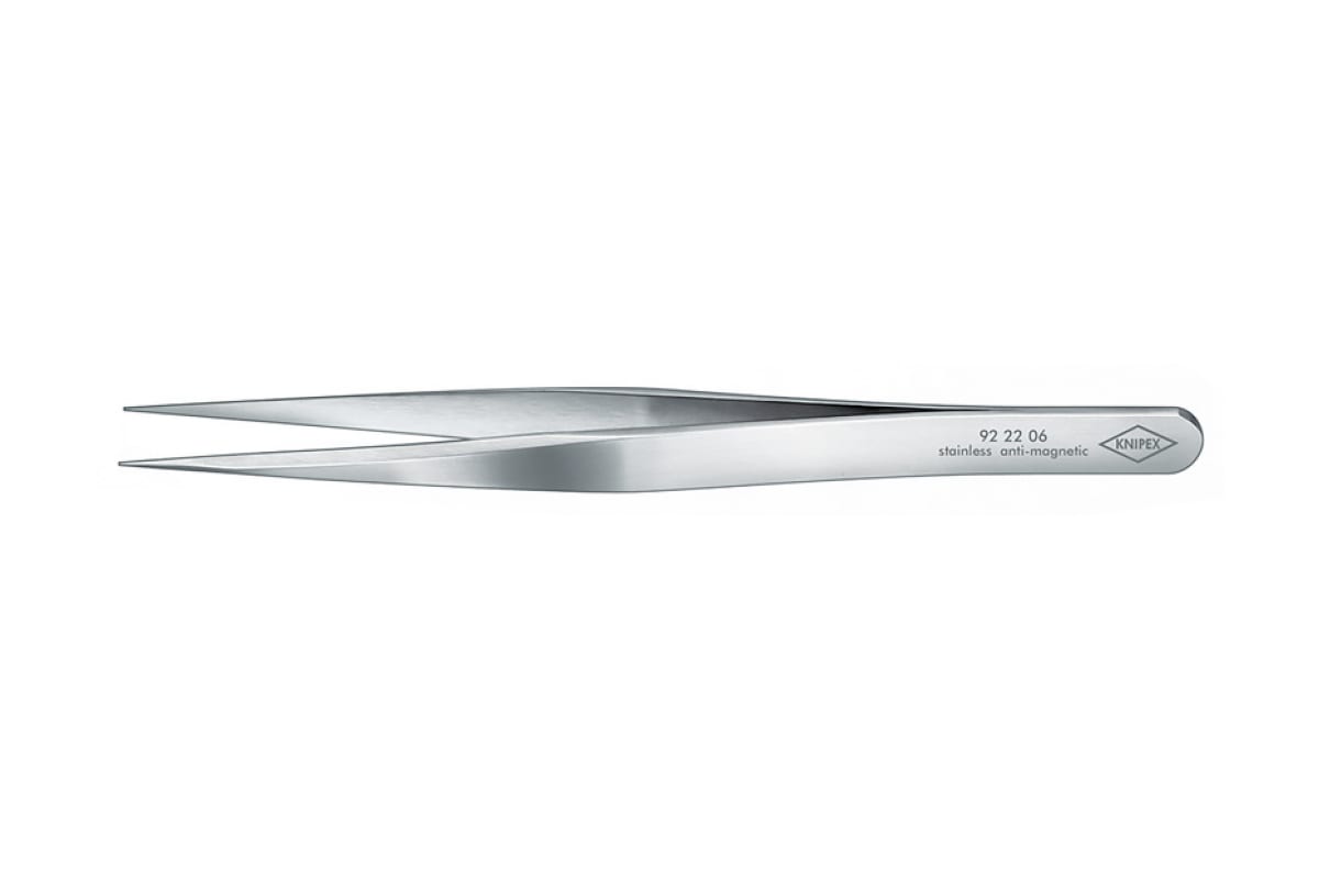 Прецизионный пинцет Knipex KN-922206 выполнен из хромоникелевой стали, которая не ржавеет и является антимагнитной. Инструмент отлично подходит для тонких монтажных работ, например, в электронике. Длина пинцета составляет 120 мм.