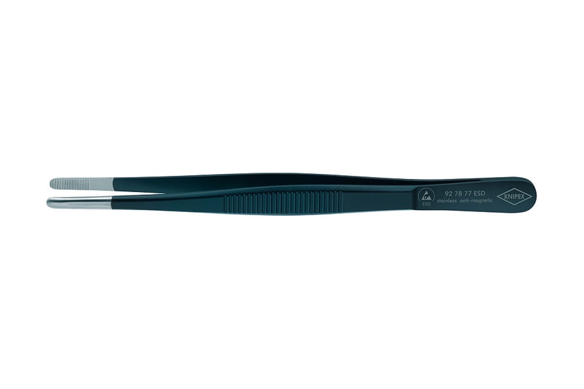 Прецизионный пинцет KNIPEX KN-927877ESD используется для работы со статически чувствительными компонентными. Изготовлен из хром-никелевой стали (18/10), устойчивой к износу и воздействию агрессивных сред. Захватные губки скругленной формы имеют мелкие зубцы для надежной фиксации детали.