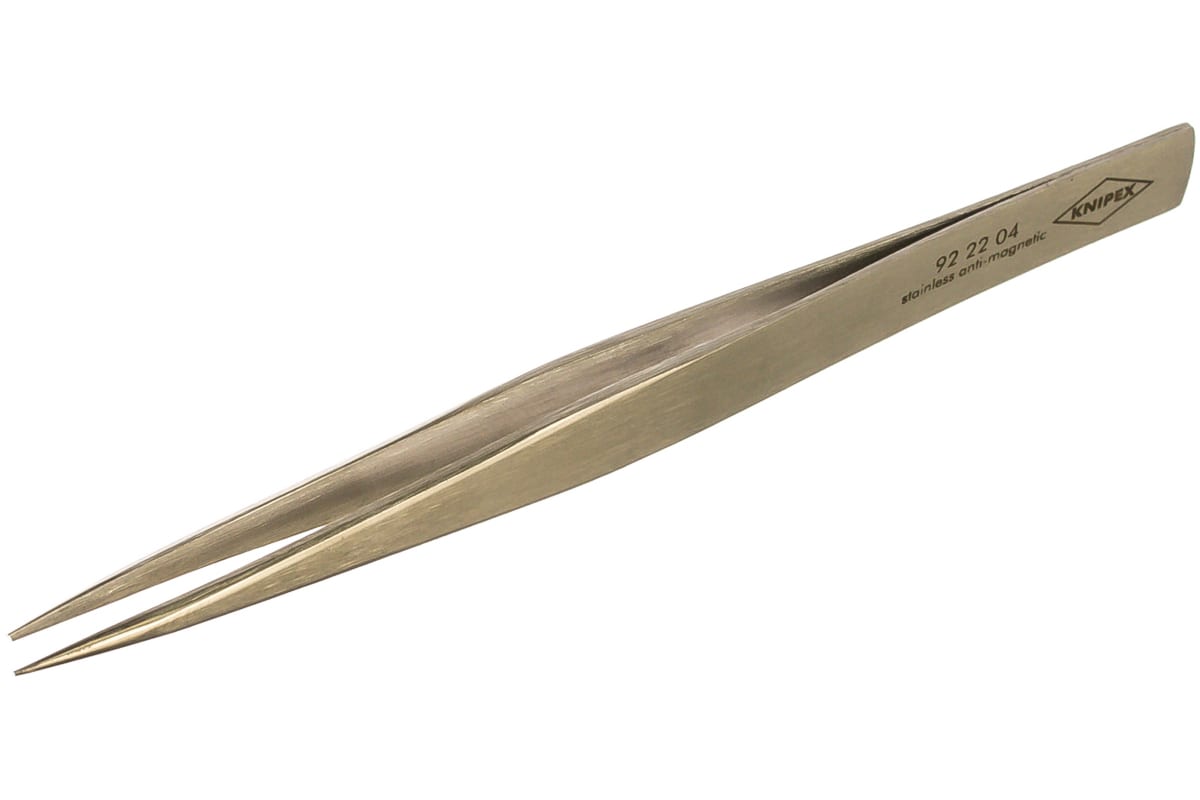 Прецизионный пинцет KNIPEX KN-922204 находит свое применение для выполнения самых тонких и точных монтажных работ. Пинцет имеет длину 13 см. Инструмент изготовлен из хромоникелевой стали, благодаря чему он не подвержен разрушению коррозией. Антимагнитные свойства пинцета позволяют использовать его при работе с электроникой.