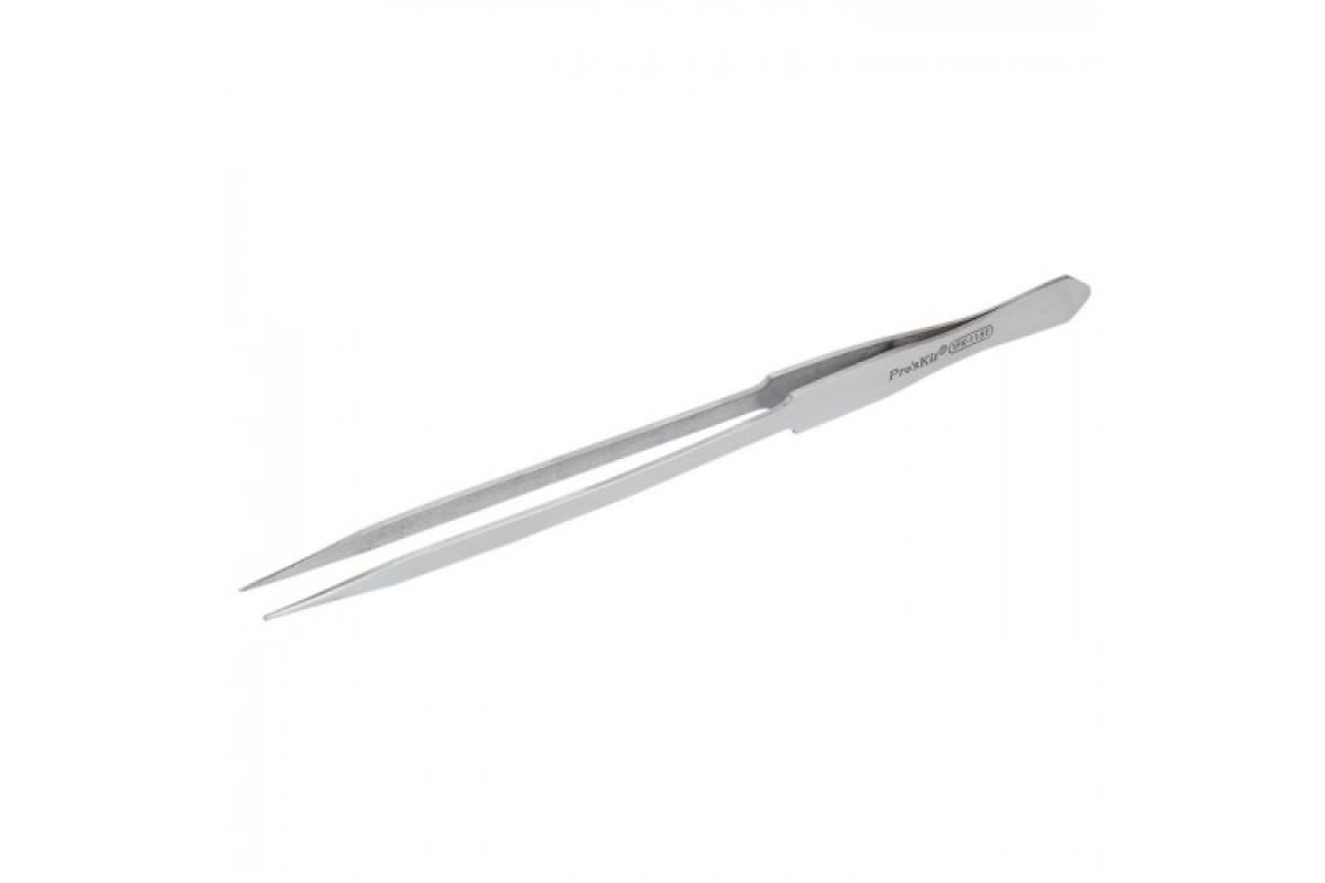 Пинцет ProsKit 1PK-115T 00154171 обладает увеличенной длиной и особым профилем - более широкими рукоятками, которые уменьшают воздействие на пальцы.