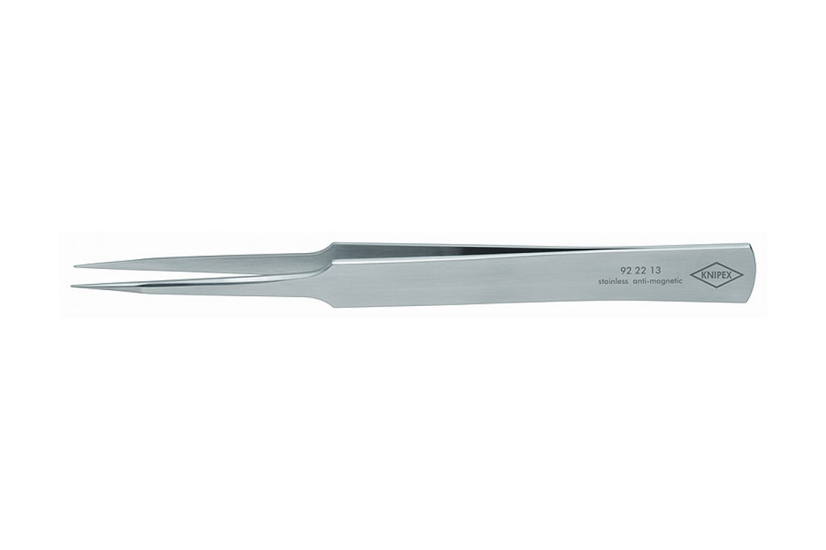Прецизионный пинцет KNIPEX KN-922213 применяется для выполнения самых тонких монтажных работ с очень мелкими и хрупкими деталями. Инструмент имеет острые и гладкие фиксирующие плоскости. Материалом для изготовления пинцета является прочная и качественная пружинная сталь, которая обладает антимагнитными и нержавеющими свойствами.