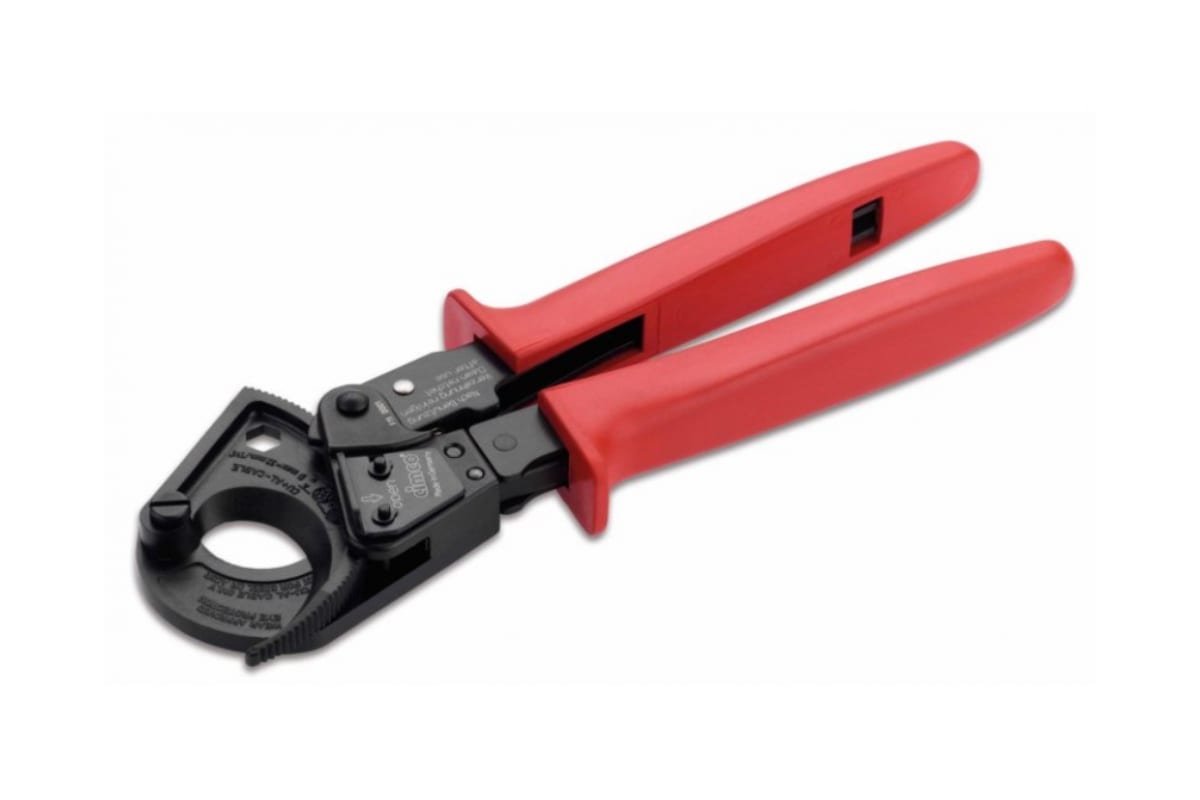 Трещоточный кабелерез CIMCO 12 0185 предназначен для резки алюминиевого и медного одножильного и многожильного кабеля диаметром до 54 мм 1х400 кв.мм или 4х120 кв.мм. Рукоятки эргономичной формы с мягкой поверхностью. Оптимальная рычажная форма обеспечивает поступательную резку. Рабочие элементы кабелереза изготовлены из высокопрочной специальной стали, режущие части закалены.