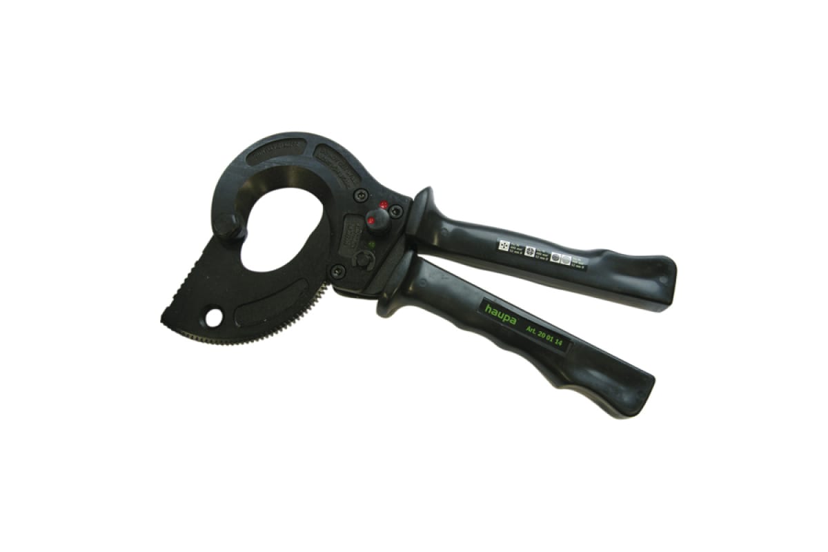 Резак для кабеля 52 мм HAUPA 200114 разработан с учетом минимизации прилагаемых усилий. Инструмент оснащен шестеренчатым механизмом, который позволяет вовремя перехватить резак. Удобные рукоятки равномерно распределяют давление по ладони. Ход легкий, усилие также снижается за счет эксцентрикового привода. Для удобства использования на рукоятках есть упоры.