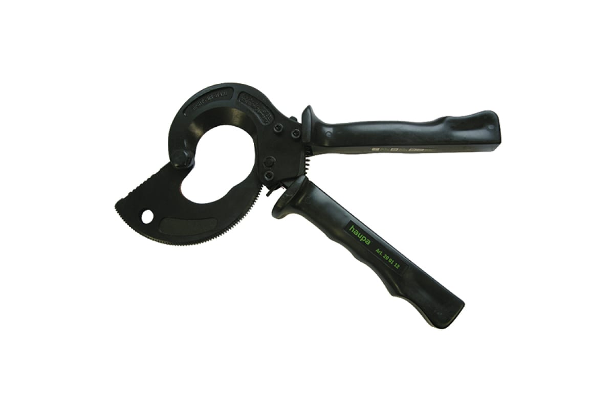 Резак для кабеля 52 мм HAUPA 200112 удобно использовать одной или двумя руками: встроенная пружина обеспечивает разжатие рукояток. Инструмент изготовлен из закаленной стали, обладает шестеренчатым механизмом, который упрощает работу с кабелями и позволяет своевременно перехватить резак. Рукоятки оснащены углублениями для пальцев и упорами, что гарантирует равномерное распределение усилий.