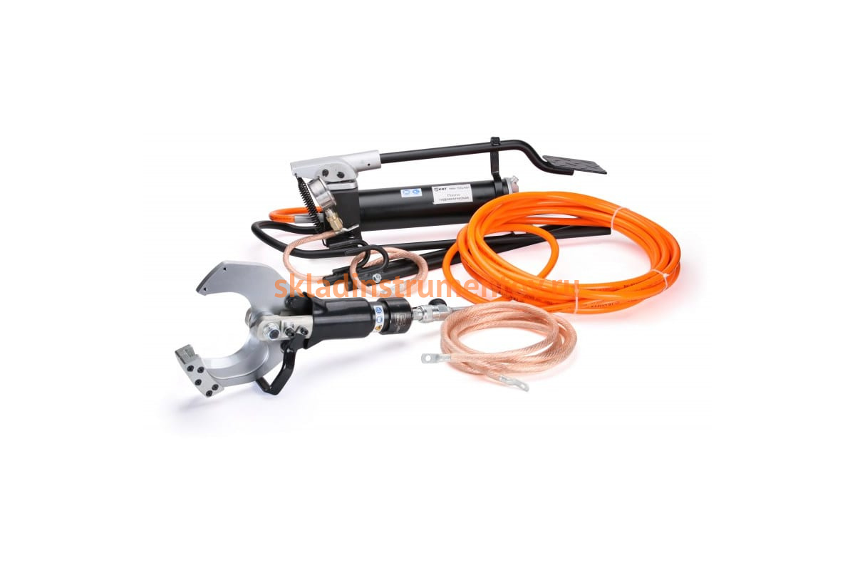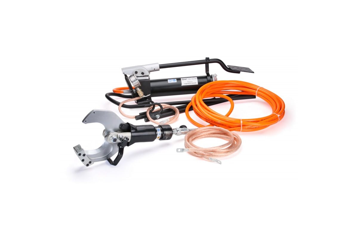 Комплект для резки кабеля под напряжением КВТ НГПИ-85 61843 - это набор, который позволяет разрезать кабель с алюминиевыми и медными жилами. Работа может происходить под напряжением до 35 кВ, путем прокола провода по диаметру с замыканием жил всех фаз между собой и на землю. Благодаря длинному шлангу, пользователь будет находится на удалении от места резки, что обеспечивает безопасность применения.