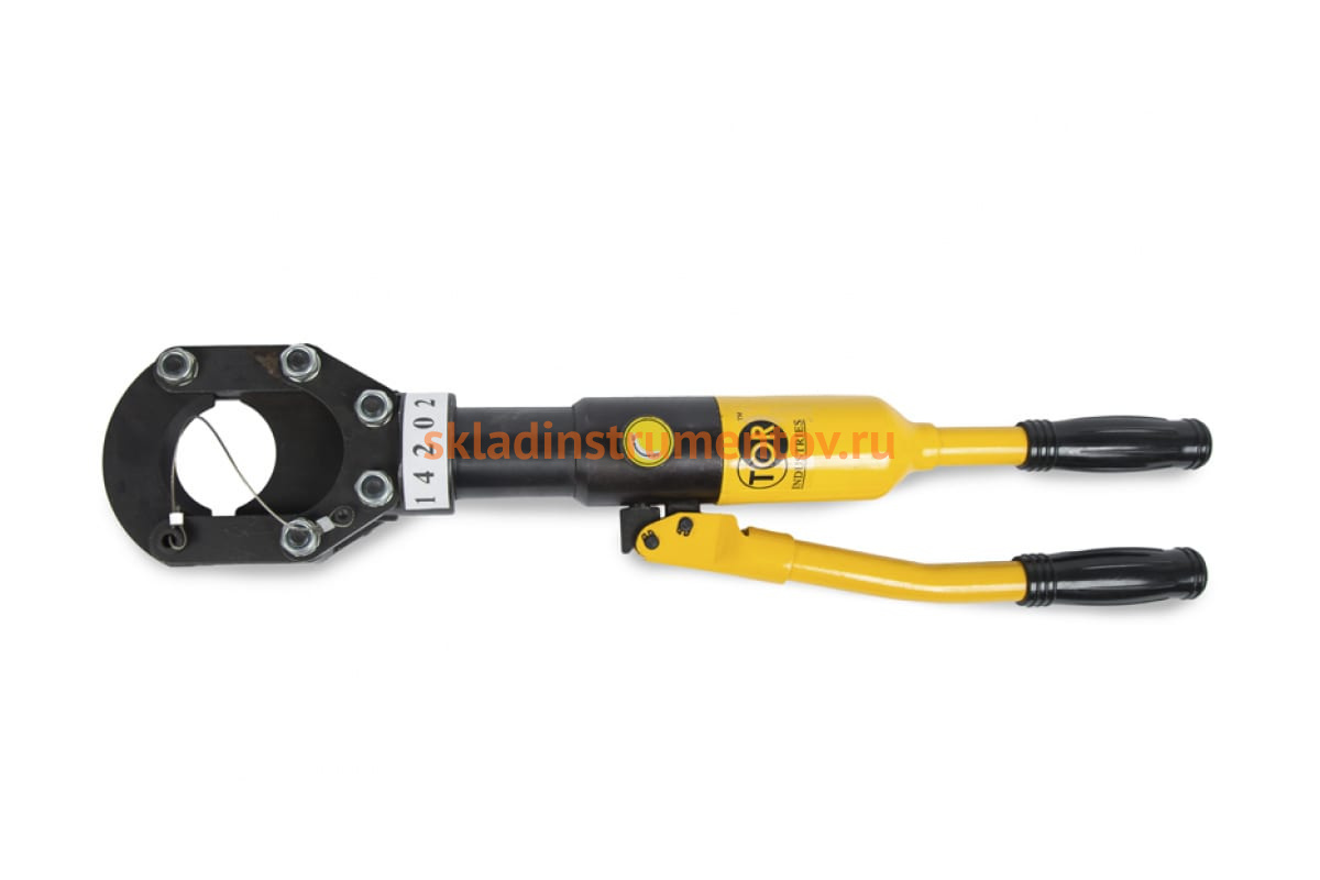 Гидравлический кабелерез TOR HHD-50 10т, 50 мм 118504 удобен в использовании за счет рельефных рукояток. Пальцы не скользят и это увеличивает передачу усилия от ладони на привод.