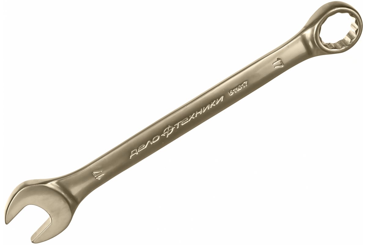 Комбинированный ключ 17 мм Дело Техники 511017 предназначен для безопасной и эффективной работы с шестигранным крепежом. Инструмент оснащен рожковой и накидной головкой, что позволяет вращать болты и гайки с максимальным усилием без риска срыва граней.