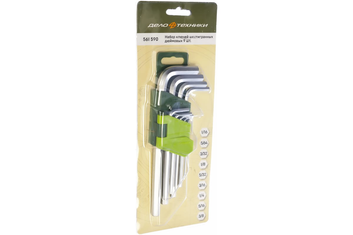 Набор шестигранных дюймовых ключей 9 шт ДТ/40 Дело Техники 561590 — это практичный комплект ручного инструмента, который предназначен для обслуживания резьбовых соединений. Г-образные ключи обеспечивают комфортное применение и высокий крутящий момент. Инструменты изготовлены из хромванадиевой стали, которая прошла процесс холодного проката для увеличения твердости. Пластиковый держатель позволяет компактно хранить инструмент.