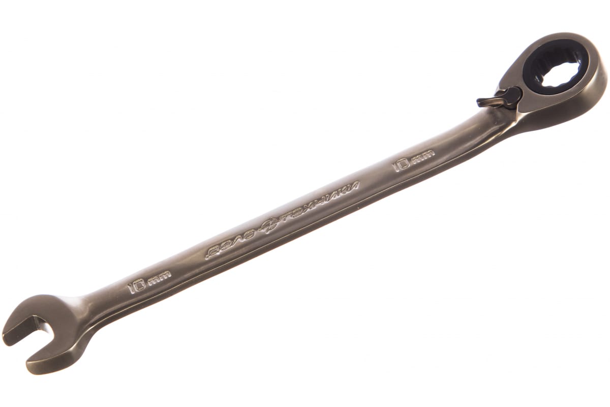 Комбинированный трещоточный ключ с переключателем 10 мм ДТ 200/5 Дело Техники 515210 предназначен для монтажа и демонтажа резьбовых соединений. Конструкция из хромванадиевой стали обладает прочностью и твердостью. Ключ состоит из рожковой головки и трещоточного механизма с переключателем - работает либо на закручивание, либо на откручивание. Накидная часть имеет изгиб под углом 10°