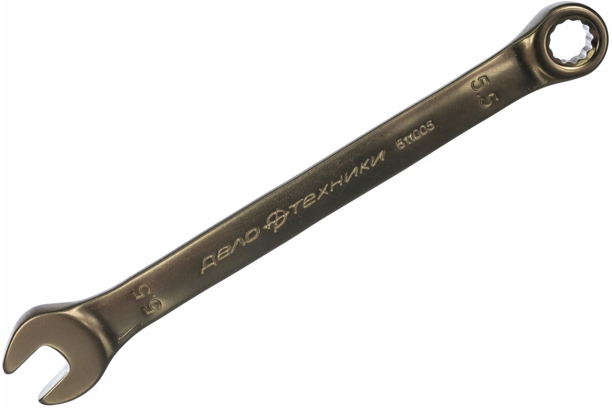 Комбинированный ключ Дело Техники 5,5 мм 511005 является прочным инструментом для монтажа и демонтажа крепежа с внешней шестигранной головкой. Изделие изготовлено из хромованадиевой стали. Ключ обладает рожковым и накидным профилями. Защитный лак предотвращает появление коррозии. Размер - 5.5 мм.