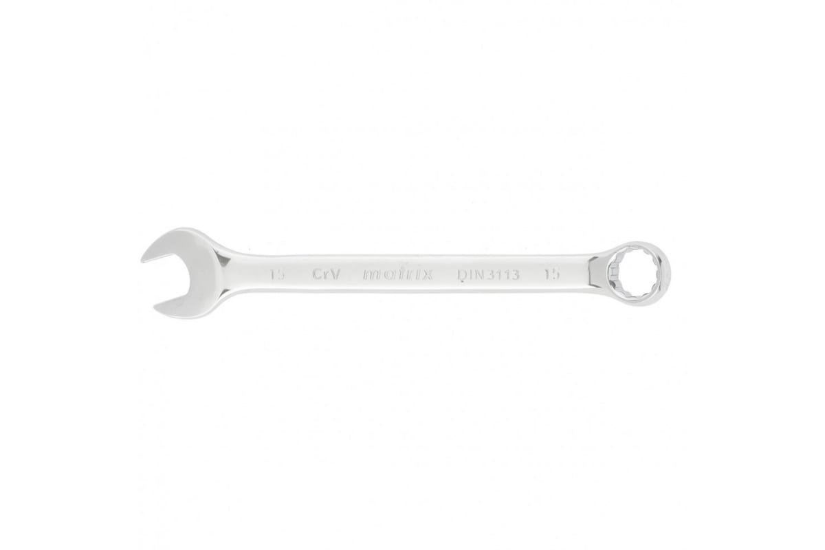 Комбинированный ключ 15 мм, CrV, полированный хром MATRIX 15159 обеспечивает высокую надежность при работе с крепежом различного формата.