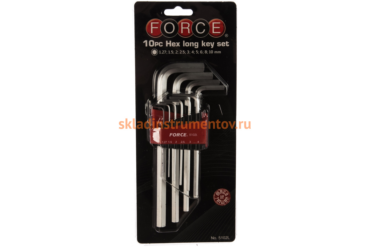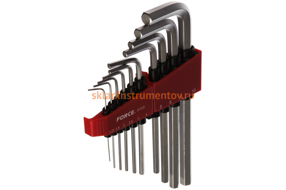 Набор средних Г-образных шестигранников 10 предметов FORCE 5102L подойдет для работы с крепежом любой сложности.