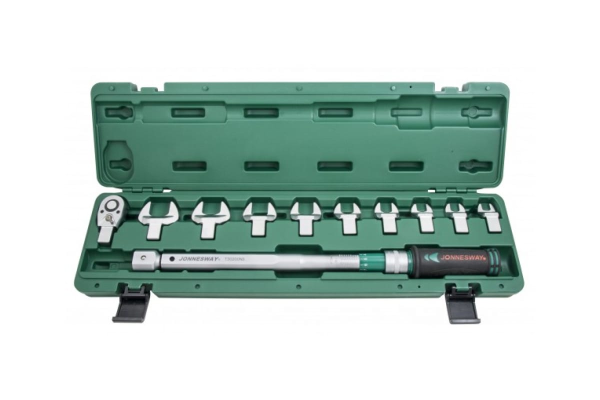 Динамометрический ключ 1/2 дюйма DR (со сменными рожковыми насадками 13-30 мм и приводом) 40-200 Нм Jonnesway T30200NS 49853 используется для работы с шестигранным крепежом при наличии ограниченного доступа. Для различных вариантов можно использовать рожковые насадки или торцевые головки через трещотку.