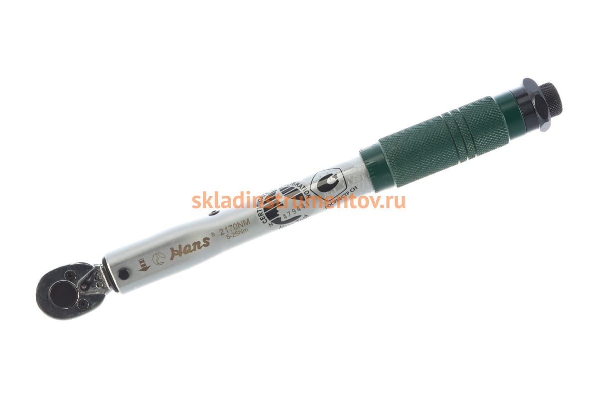 Динамометрический ключ Hans 5-25Nm 1/4" 2170NM - это ручной инструмент для совместного использования с торцевыми головками. Корпус изготовлен из прочной стали. Динамометрический ключ обладает усилием в диапазоне от 5 до 25 Нм. Посадочный квадрат инструмента - 1/4".