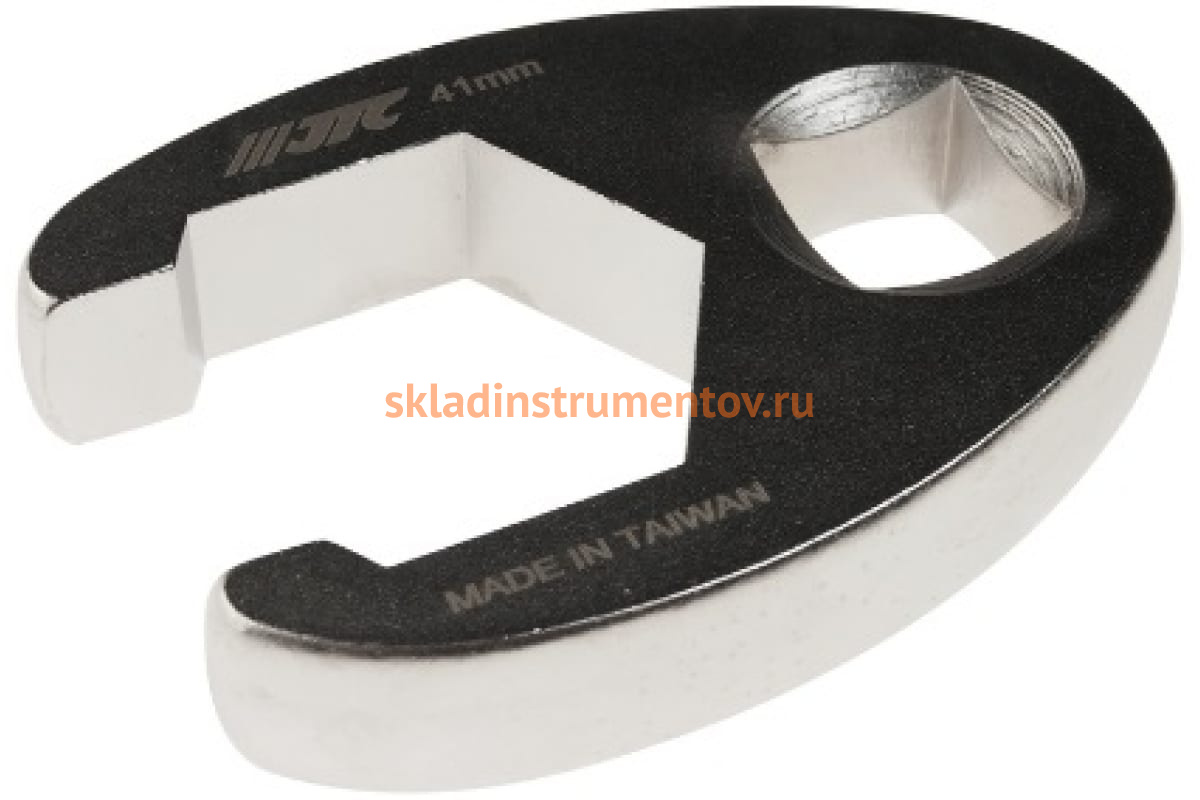 Разрезной односторонний ключ 3/4 41мм JTC-1963 - специализированный инструмент для откручивания и закручивания накидных гаек разнообразных гидро- и пневматических систем автомобилей. Изделие выполнено из прочной хром-молибденовой стали. Габариты: 95х68х18 мм.