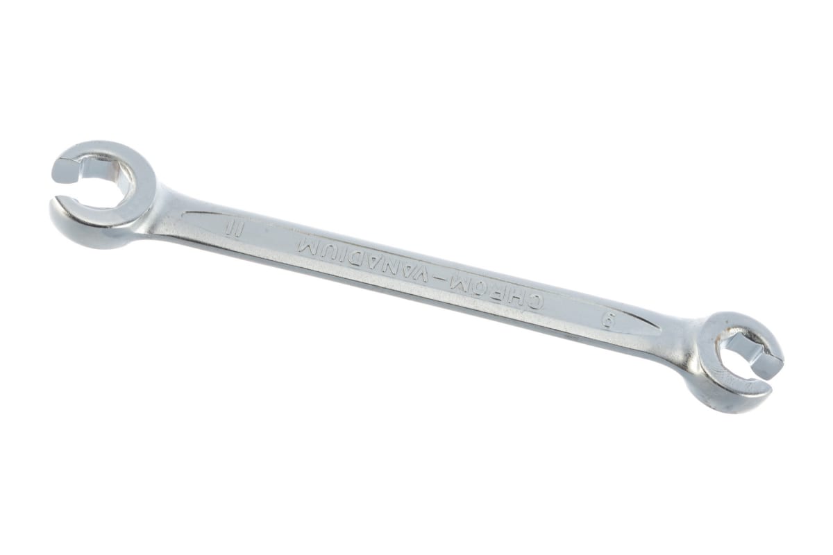Разрезной ключ Jonnesway W240911, как и все ключи этого вида, прекрасно справляется с работой по исправлению трубопроводов. Ни рожковый, ни накидной ключ в таком случае не применим. У данной модели размеры головок 9 и 11 мм.