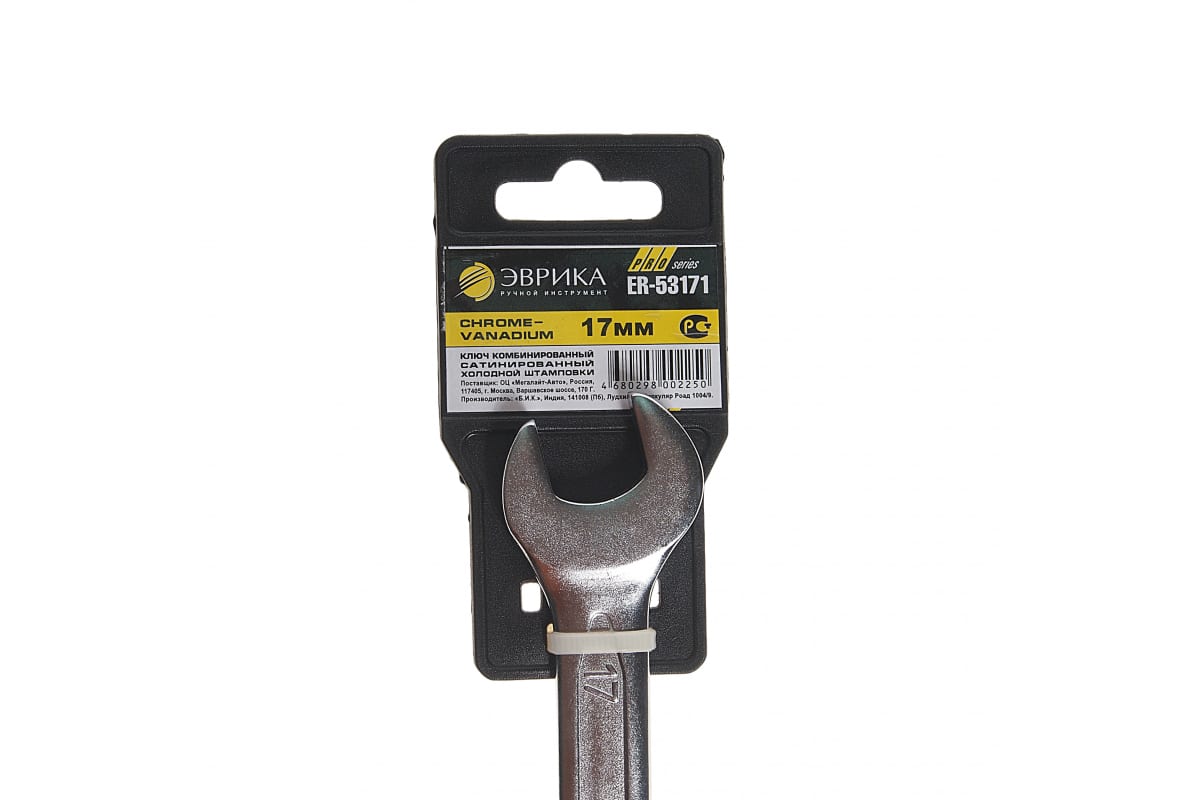 Комбинированный ключ 17мм ЭВРИКА ER-53171 подойдет для работы с шестигранным крепежом. Две головки обеспечивают простой доступ к болтам и максимальный охват граней.