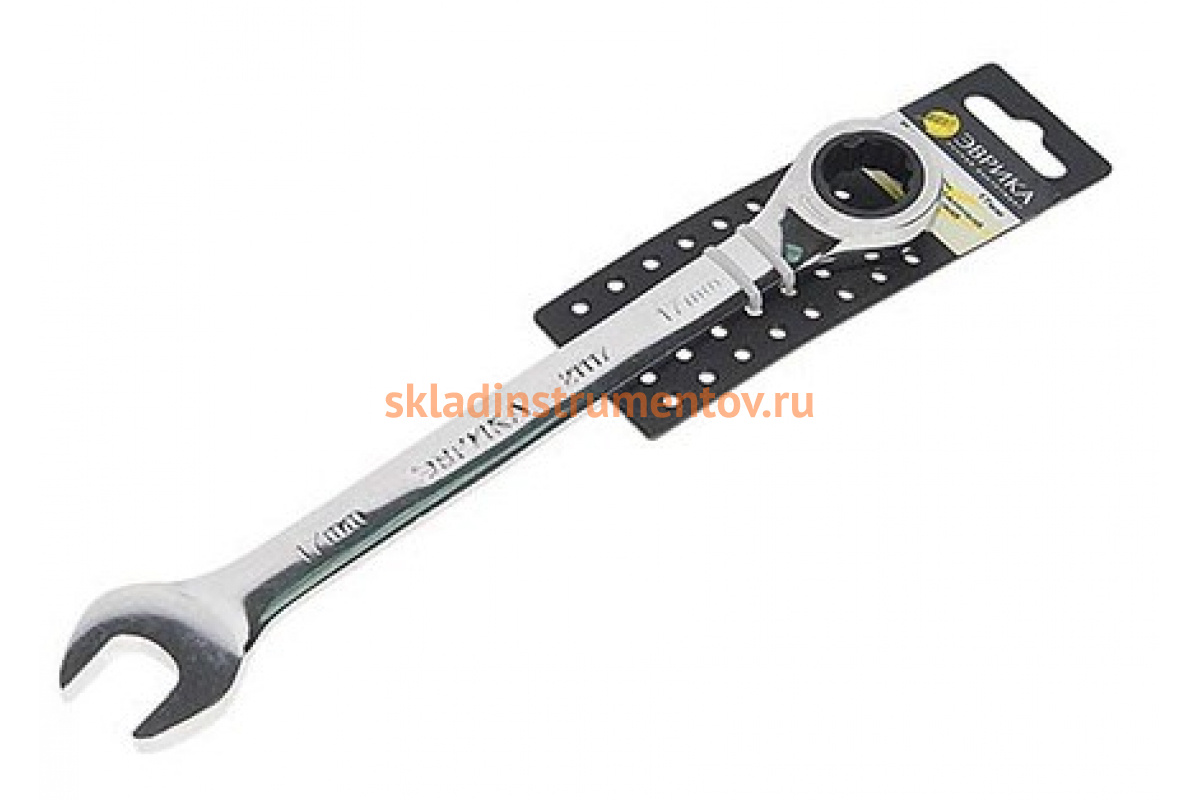 Комбинированный трещоточный ключ 17мм ЭВРИКА ER-21117H подойдет для работы с шестигранным крепежом.