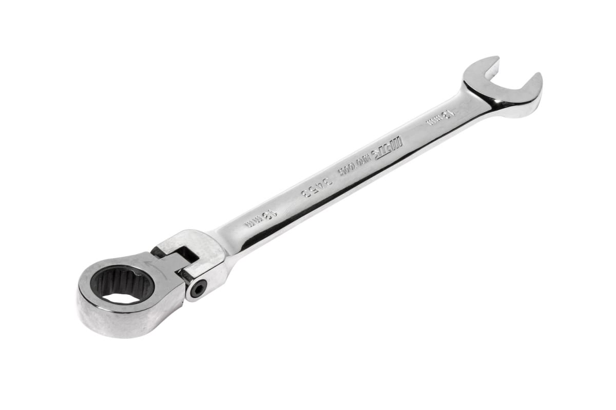 Комбинированный трещоточный ключ с подвижной головкой JTC 13 мм 1/12/120-3453 удобен для работы в труднодоступных местах с резьбовыми соединениями. Инструмент обладает двумя головками: рожковой и накидной с трещоткой и подвижной головкой. Ключ изготовлен из хромованадиевой стали, прошел процесс зеркальной полировки, что исключает возникновение трещин на поверхности. Размер - 175х25х10 мм.