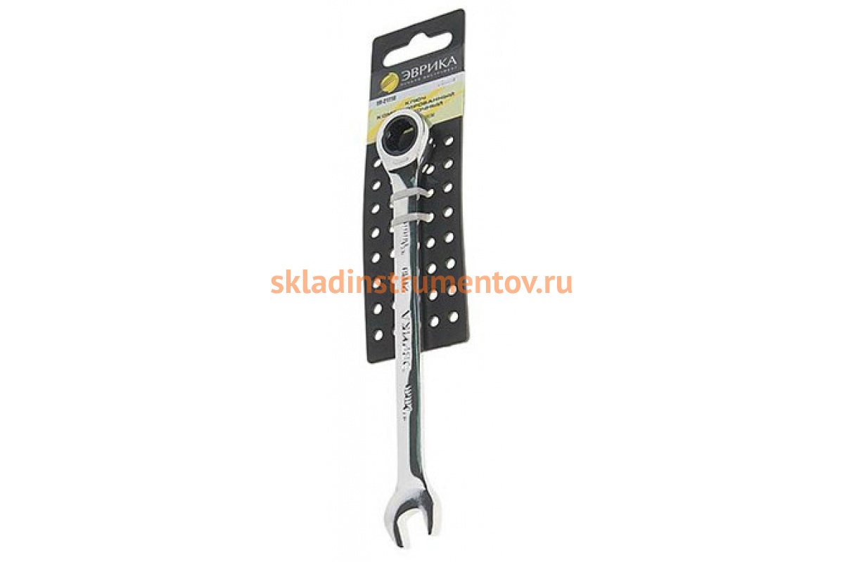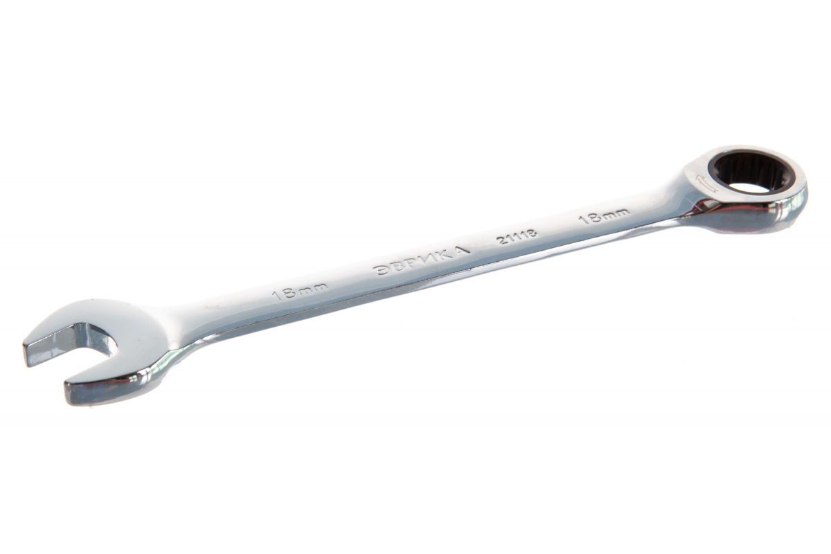 Комбинированный трещоточный ключ 18мм на держателе ЭВРИКА ER-21118H подойдет для работы с шестигранным крепежом.